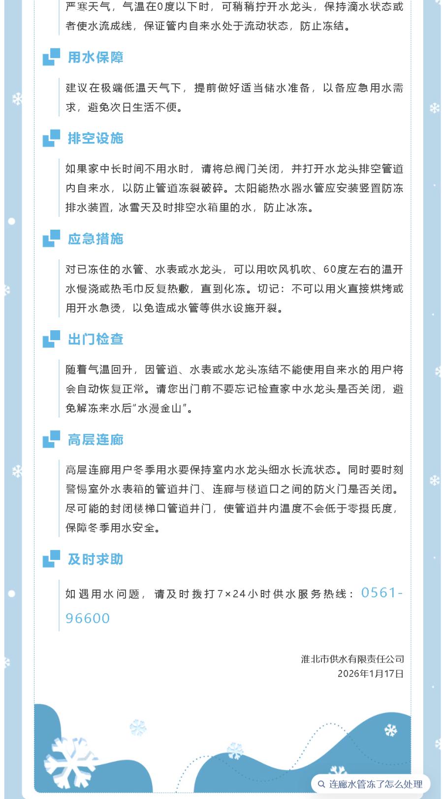 严加防范!冬日用水更安心