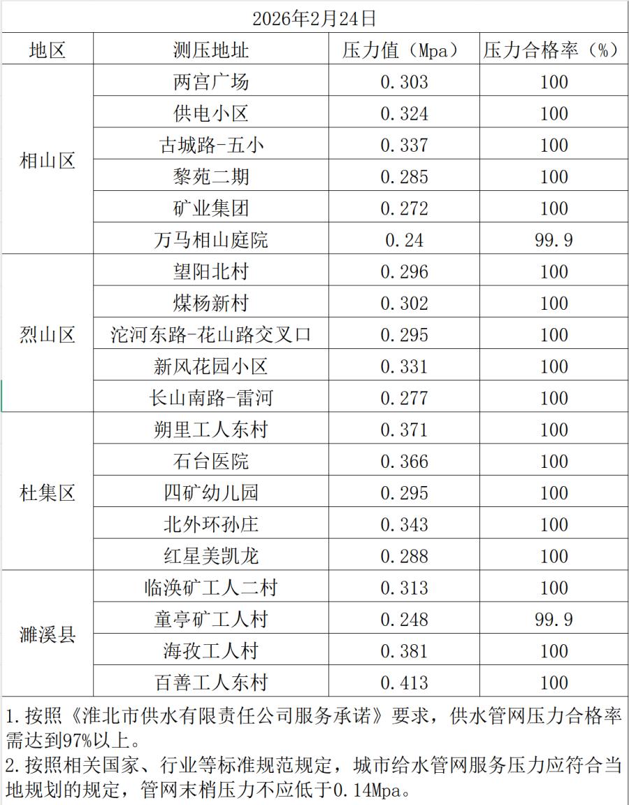 2026年2月24日水压抽测公示